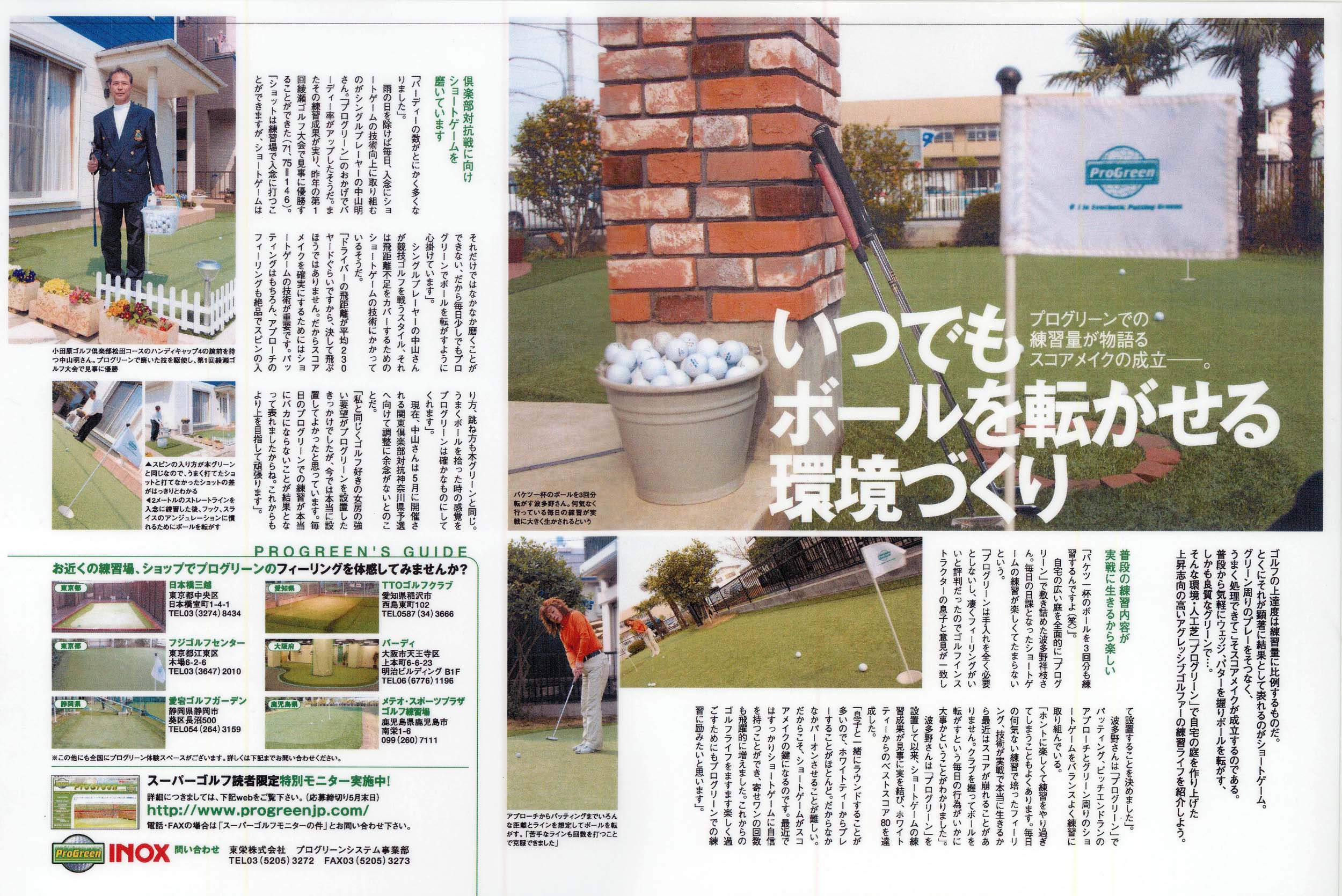 仕事が忙しくて練習場にいけないときでもプログリーンで十分に練習できるし、トーナメント中継などでヒントを得たとき、すぐに練習することもできる。しかも本芝並みのクオリティなのが嬉しいです。 |