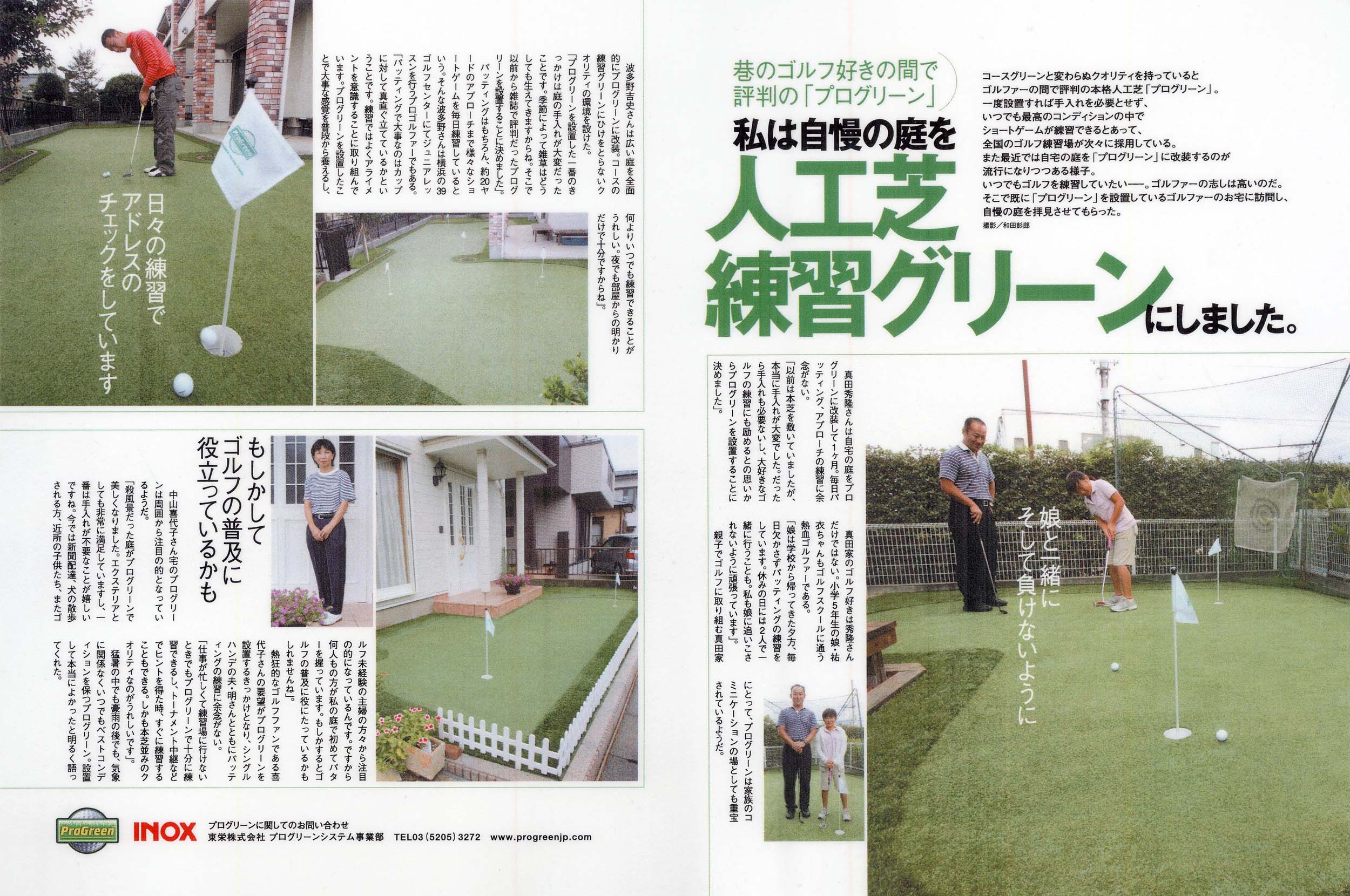 庭に自分専用のグリーンを持つことが出来たので、好きな時にいつでも練習ができるようになりました。プログリーンは外観も本芝と同様なので植木とも調和し、芝刈りや散水の手間も無くお庭がいつも綺麗だと妻もよろこんでいます。