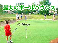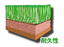 ②プログリーンロングボールターフは長距離からのショットを受け止めることができます。その秘密は密度のあるファイバーと多めのトップドレッシングサンドです。より長いファイバーはそれだけプログリーントップドレッシングを取り込み、多量のトップドレッシングサンドと、より長いファイバーで最大のボールバウンスを可能にします。